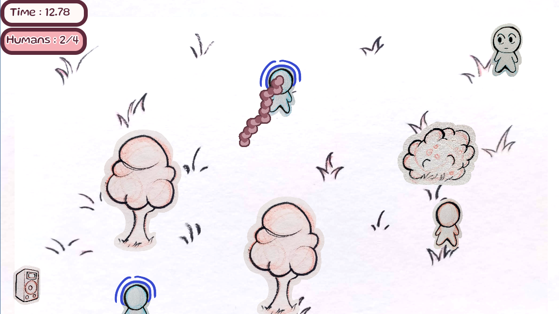 As the little worm song, you can bounce on objects, infect humans, and even go through materials modifying your sound.